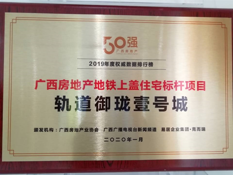 • 軌道御瓏壹號城獲得廣西地產金磚獎2020成長價值樓盤大獎