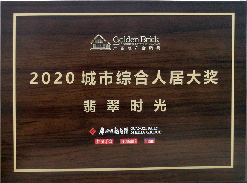 • 翡翠時光獲得廣西地產金磚獎2020城市綜合人居大獎