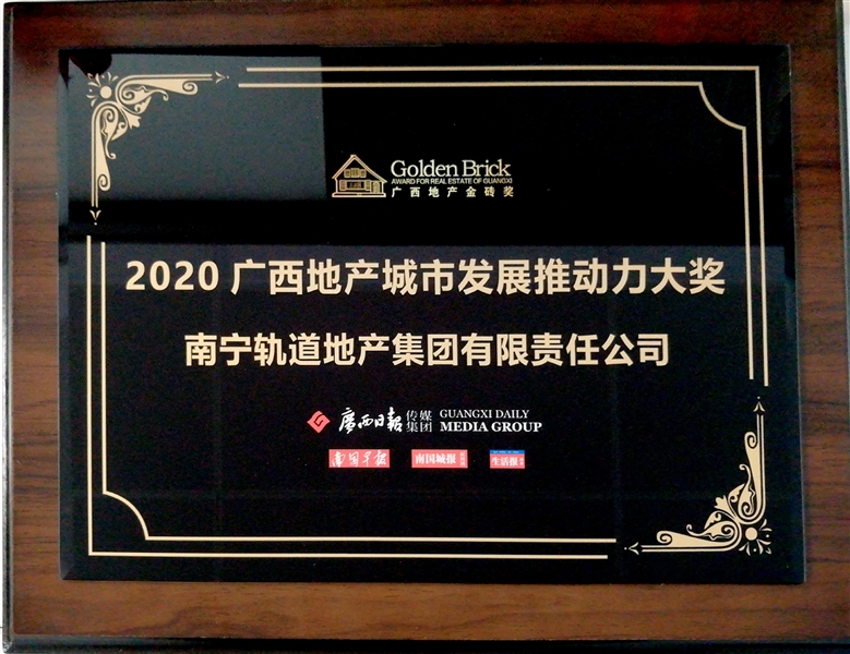 • 軌道地產公司獲得廣西地產金磚獎2020廣西地產城市發(fā)展推動力大獎