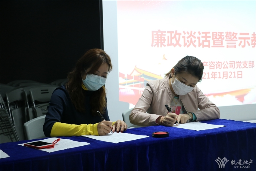 活動(dòng)中,軌道地產(chǎn)咨詢公司黨支部書(shū)記、董事長(zhǎng)劉燕組織與會(huì)人員學(xué)習(xí)了《關(guān)于兩起違反中央八項(xiàng)規(guī)定精神問(wèn)題典型案例的通報(bào)》等相關(guān)文件,并集中觀看了警示教育片《縣委書(shū)記為何滑向深淵》。軌道地產(chǎn)咨詢公司各部門、各項(xiàng)目負(fù)責(zé)人還與黨支部書(shū)記劉燕簽訂了《黨風(fēng)廉政建設(shè)承諾書(shū)》