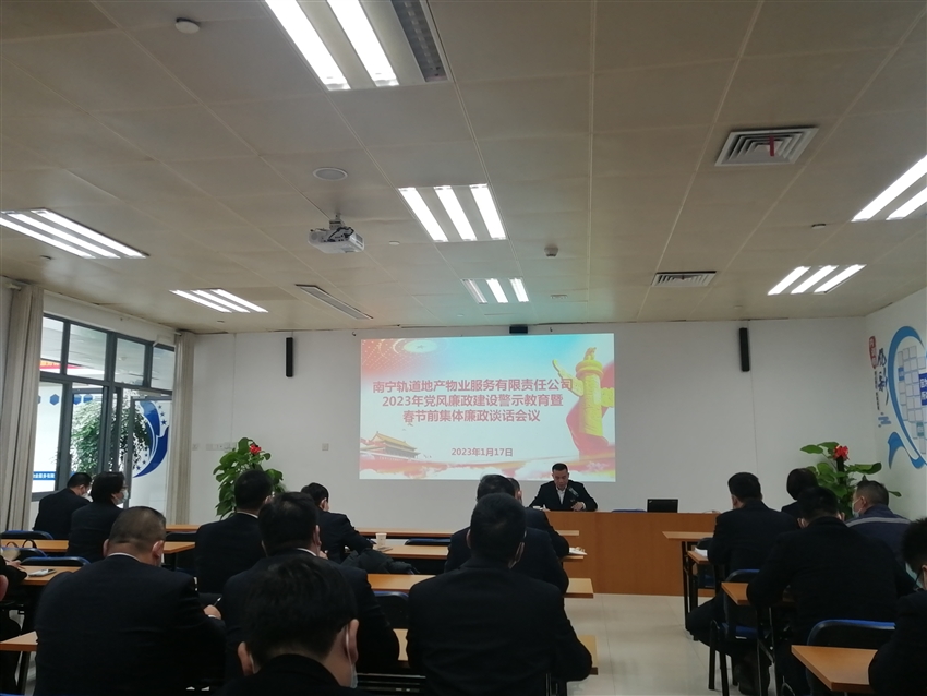 為深入學(xué)習(xí)貫徹黨的二十大及二十屆中央紀(jì)委二次全會會議精神,推進公司全面從嚴(yán)治黨和黨風(fēng)廉政建設(shè)工作,增強全體黨員干部的廉潔自律意識,營造風(fēng)清氣正的廉潔過節(jié)氛圍,2023年1月17日南寧軌道地產(chǎn)物業(yè)公司黨支部在東站樞紐培訓(xùn)室召開2023年黨風(fēng)廉政建設(shè)警示教育暨春節(jié)前集體廉潔談話,公司全體黨員、入黨積極分子、中層管理人員共47人參加了此次會議。