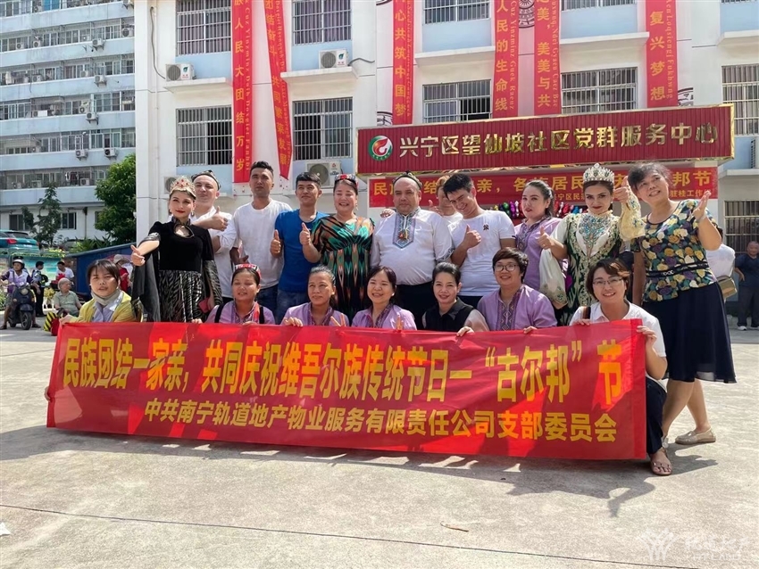 為弘揚(yáng)民族文化,促進(jìn)民族團(tuán)結(jié),鑄牢中華民族共同體意識(shí),結(jié)合中國(guó)共產(chǎn)黨成立一百周年的契機(jī),望仙坡社區(qū)、新疆駐桂工作組、興寧區(qū)民宗局于2021715日上午在望仙坡社區(qū)廣場(chǎng)開(kāi)展古爾邦節(jié)民族文化宣傳活動(dòng),軌道地產(chǎn)物業(yè)公司黨支部作為黨建聯(lián)盟單位,受邀參加此次活動(dòng),與各族群眾一起共同慶祝維吾爾族傳統(tǒng)節(jié)日--“古爾邦”節(jié)。